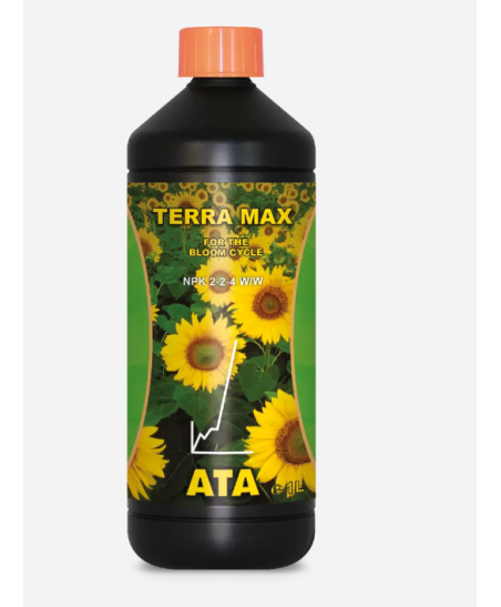 ATA Terra Max es una solución nutritiva básica universal para plantas que se utiliza durante el ciclo de floración y está desarrollada específicamente para el cultivo en tierra. Debido a que este sustrato es naturalmente rico en calcio y otros nutrientes, ATA Terra Max tiene un contenido bajo en calcio y los valores de NPK se han mantenido relativamente bajos para evitar la sobrefertilización.