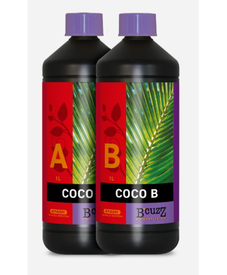 B’cuzz Coco A&B son nutrientes básicos universales que proporcionan a la planta joven la nutrición mineral concentrada y específica que necesita para convertirse en una planta fuerte y saludable.