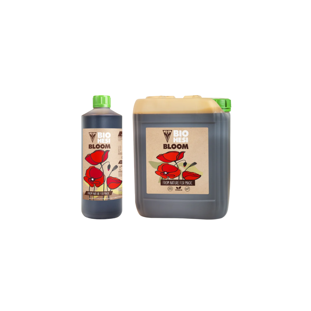 Bio Hesi Bloom es el abono de floración de nuestra nueva gama 100% natural, ecológica y vegana. Este nuevo abono cumple todos los requisitos para el cultivo biológico y orgánico, y se reconoce por el nombre "Bio Hesi" con los correspondientes logotipos "100% natural", "vegano" y "agricultura orgánica". Las materias primas utilizadas en los productos de esta línea se obtienen de forma sostenible a partir de subproductos de la producción alimentaria, y son 100% veganas. Un ejemplo es la pulpa de uva derivada de subproductos de la producción de vino.
