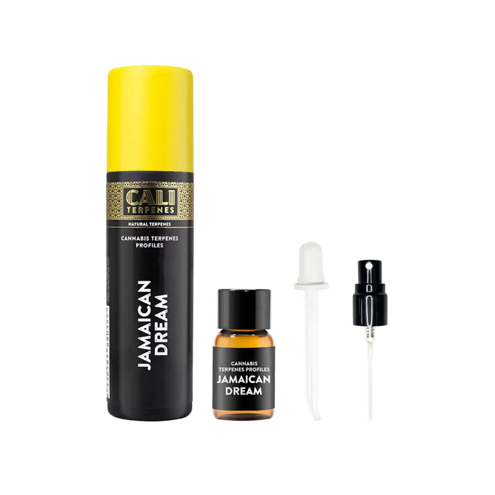 El perfil de terpenos Jamaican Dream se compone de cerca de 40 elementos, de los que destacan el mirceno, Cariofileno alfa pineno, beta pineno, limoneno, terpinoleno, linalol, nerodiol.