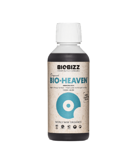 Bio Heaven de Biobizz es un aditivo líquido y 100% ecológico pensado para las etapas de creciemiento y floración de las plantas de marihuana. Forma parte de la gama de productos 100% biológicos de Biobizz y utilizándolo conjuntamente con los demás productos, el fabricante nos asegura una cosecha óptima.