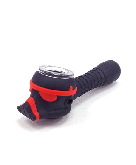 Pipa de silicona con diseño exclusivo y cazoleta de vidrio de alta resistencia.