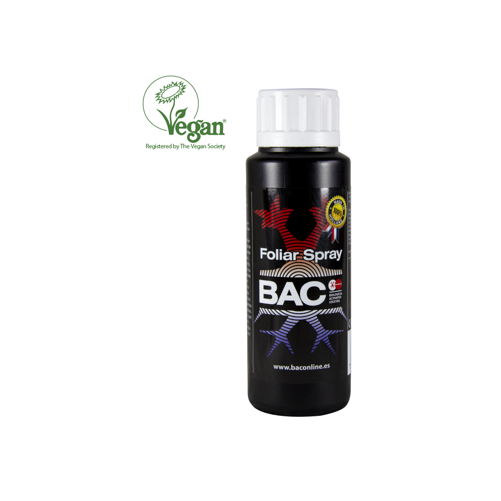 B.A.C Foliar Spray es una solución diseñada para estimular la rápida producción de clorofila en las hojas de tus plantas. Actúa activando los microorganismos presentes tanto dentro como en la superficie de las hojas, los cuales son responsables de la fotosíntesis y la producción de clorofila. Este proceso impulsa el vigor de tus plantas, fortaleciendo los brotes y promoviendo el crecimiento de hojas más gruesas y saludables.