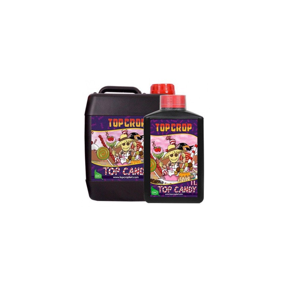Top Candy de Top Crop es un fertilizante, 100% orgánico, que aumenta el peso y volumen de tus cogollos y potencia su aroma. Este fertilizante está formulado a base de extractos naturales de plantas y rico en azúcares e hidratos de carbono. El alimento que tus plantas necesitan para obtener mayor rendimiento en tus cosechas e incrementar la cantidad de resina, potenciando el sabor.